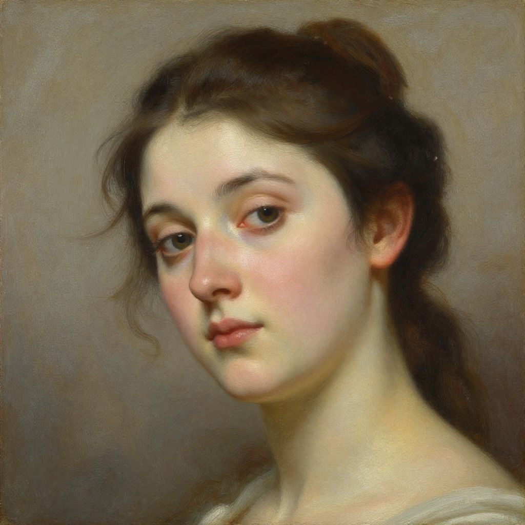 A finely detailed oil painting by Adolphe William Bouguereau, showcasing a serene study of a woman's head with soft, naturalistic lighting and meticulous attention to texture and form.