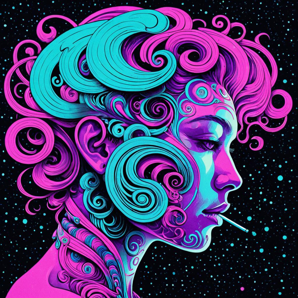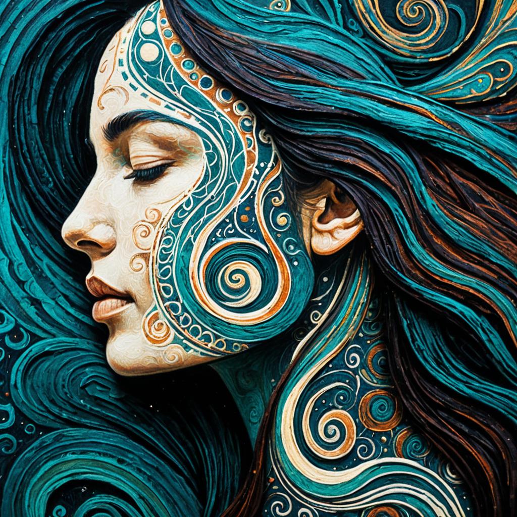 Abstract Oceanic Female Portrait with Swirling Patterns