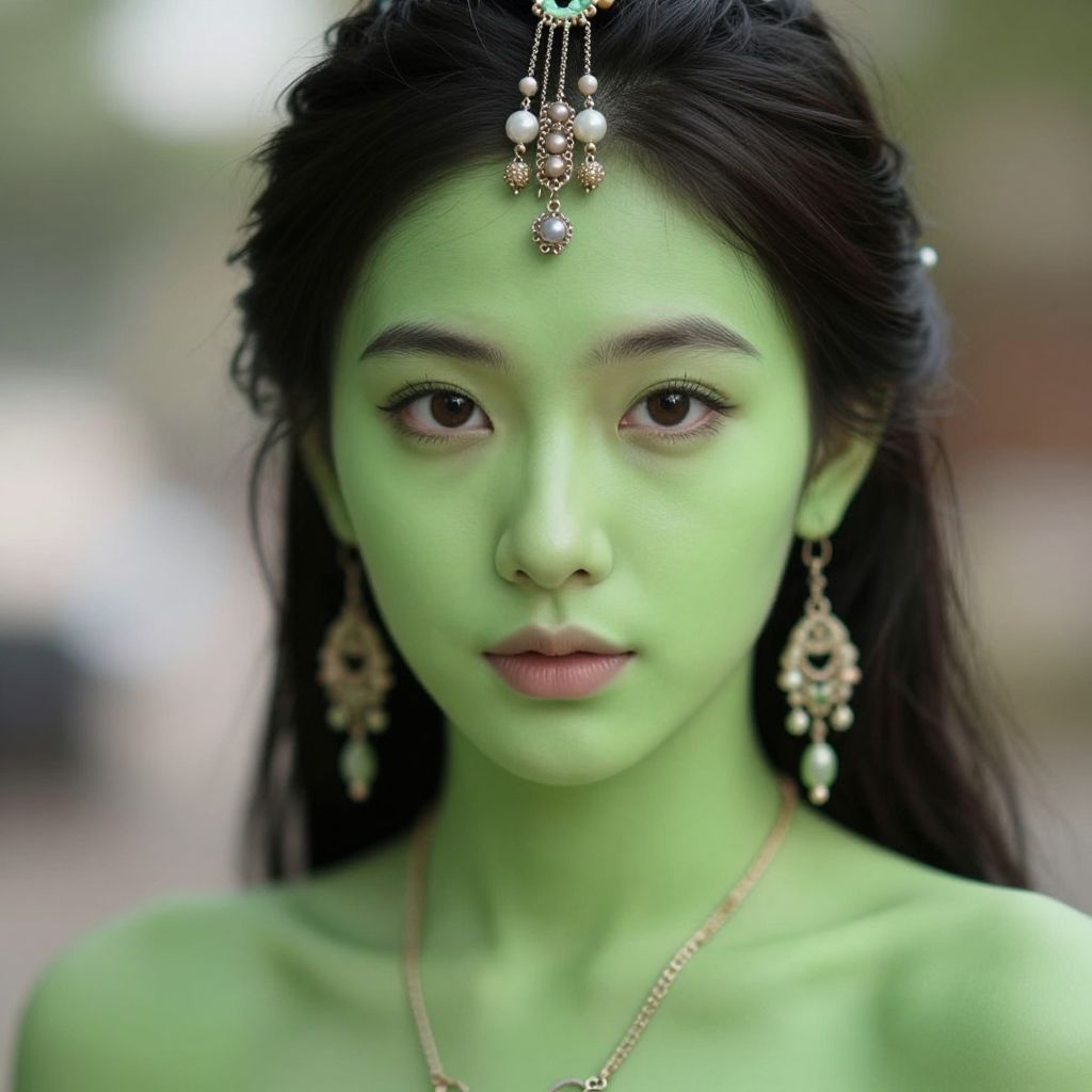 Realistic Portrait of Green-Skinned Woman