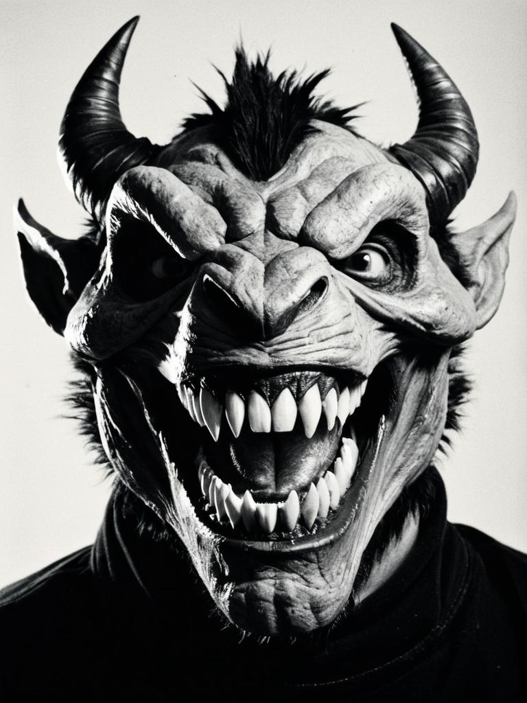 Man in Beast Teeth Costume, detailed photorealistic studio portrait