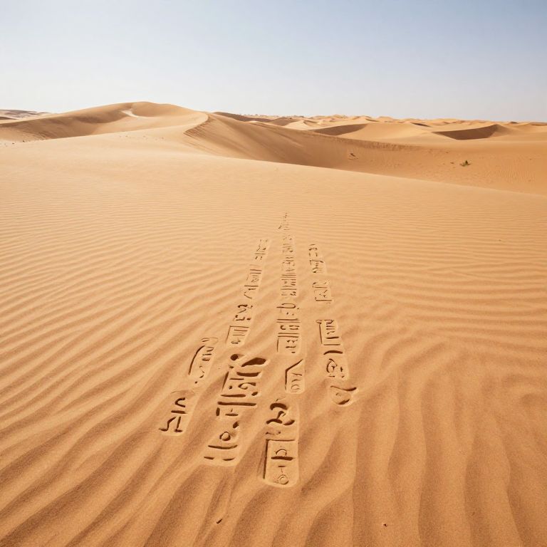 A desert where shadows live independently, forming intricate, legible hieroglyphs that shift with the wind’s breath.