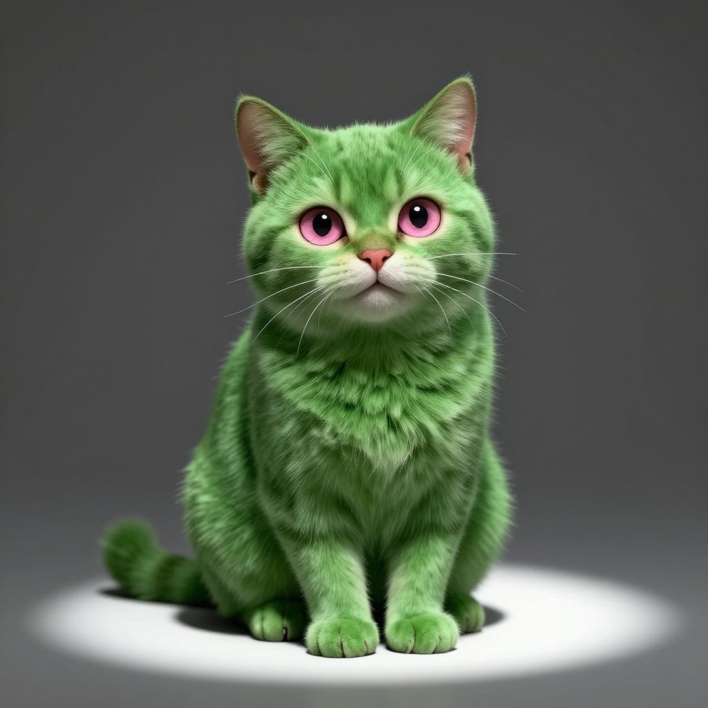 Realistic Green Fur Cat Portrait