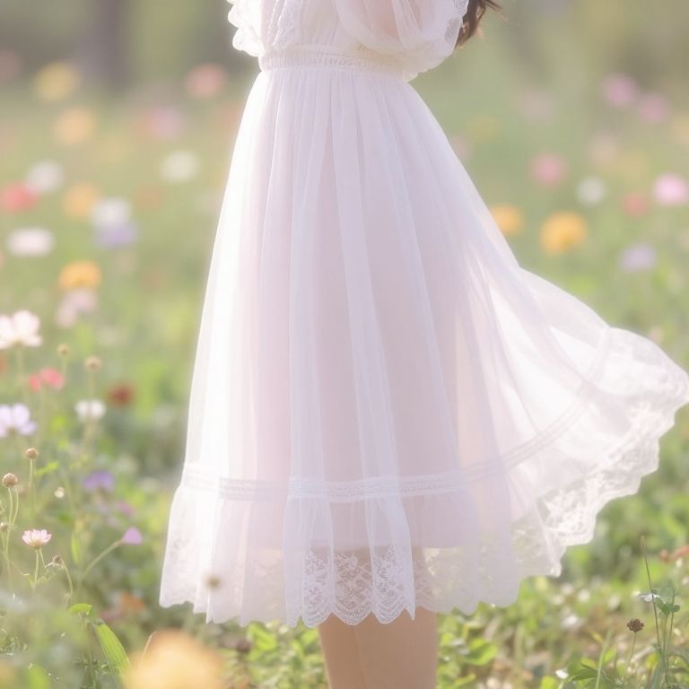 Woman in Striped White Dress