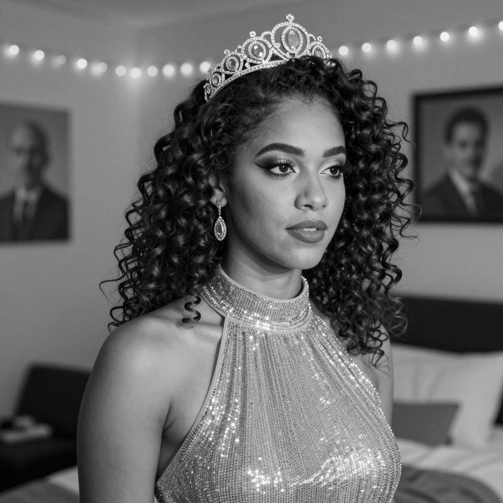 Smiling Women on Stage Wearing Silver Dresses and Sashes