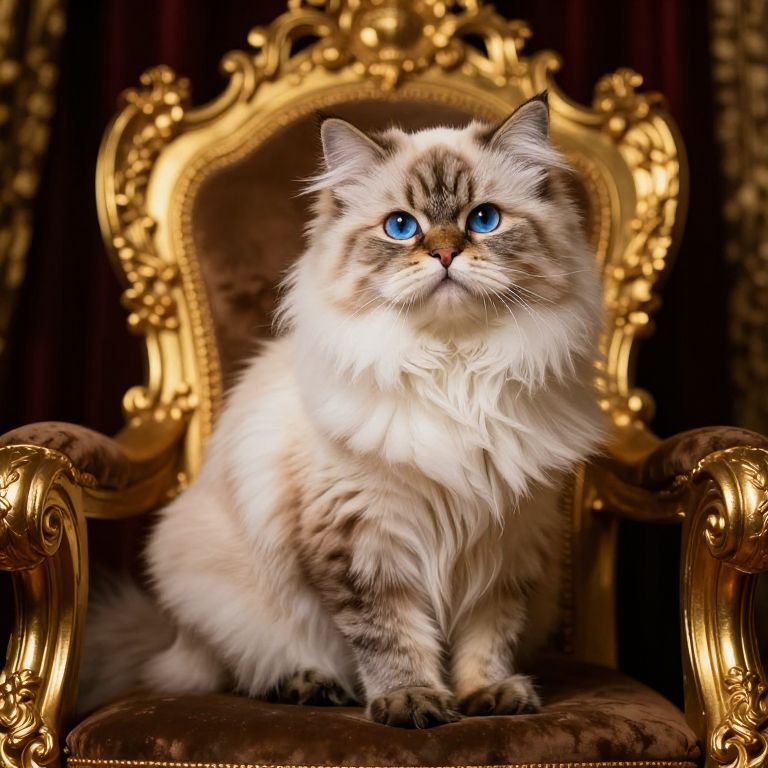 Regal Persian Cat on Golden Throne