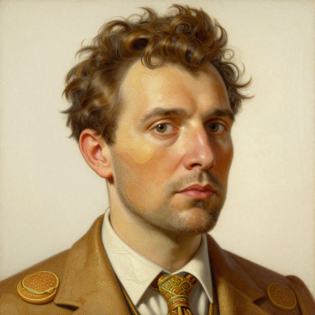 Intricate Hamburger Man Oil Portrait