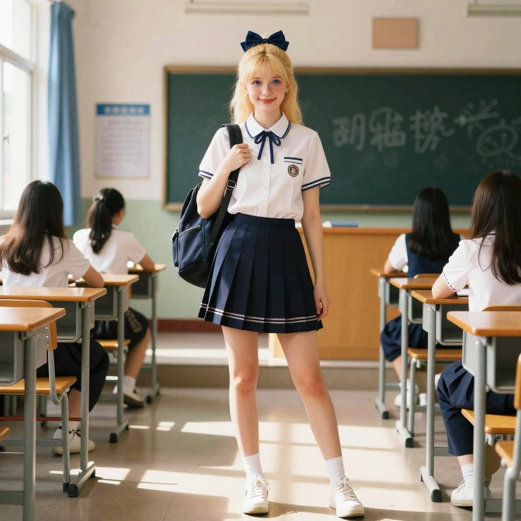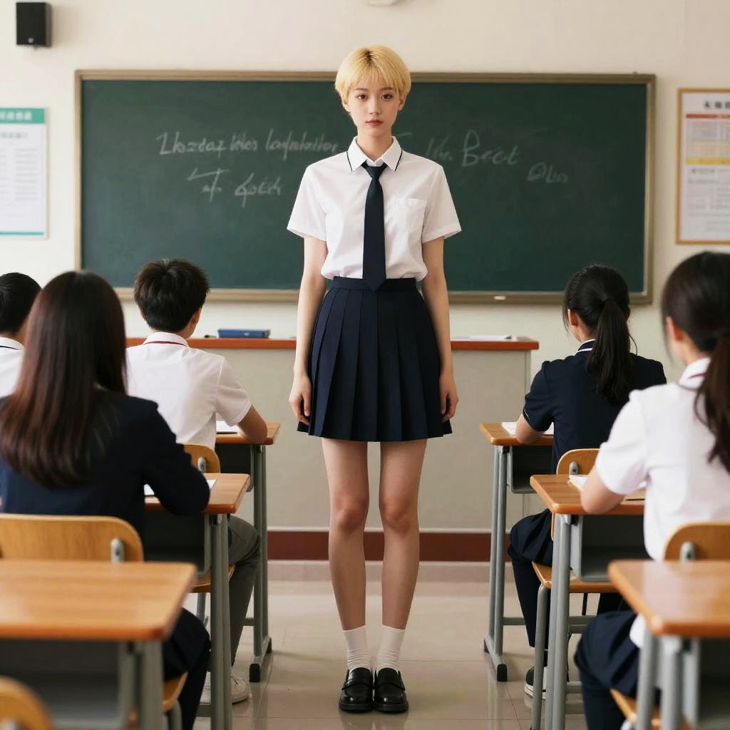 Stunning Classroom Scene with White-Haired Woman