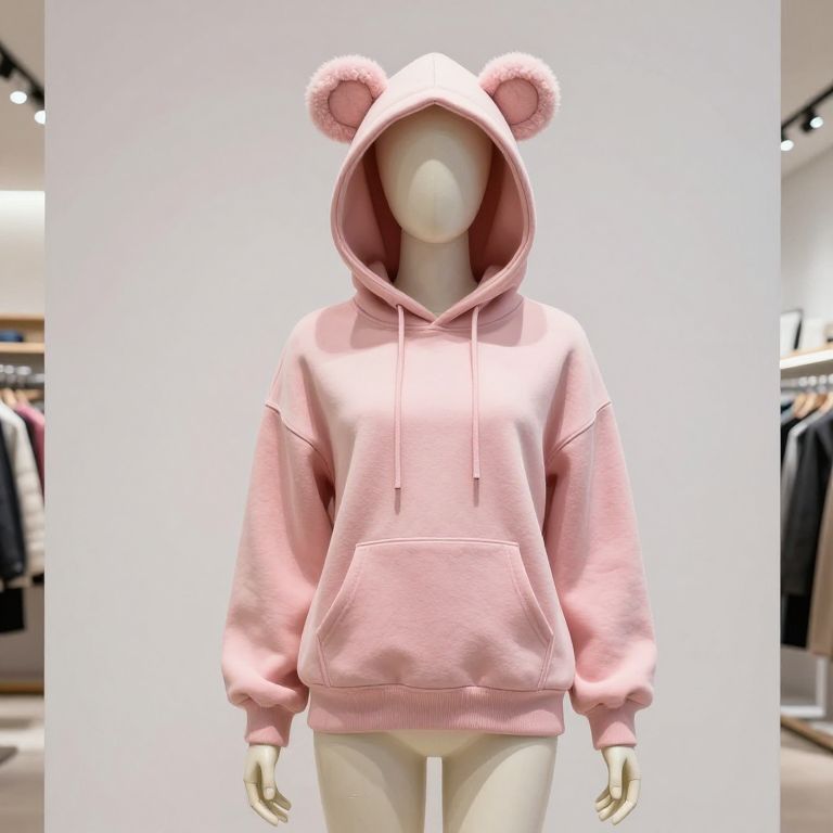 A mannequin wearing a vibrant pink outfit stands confidently in front of a modern building with a large, bright window. The mannequin has a detailed black beard and a neatly groomed black mustache, giving it a whimsical, slightly quirky appearance. On either side of him, there are lush green plants with small flowers, adding a natural and living contrast to the mannequin's static form. The scene is set in a sunny urban environment with soft ambient lighting, blending the artificial and organic elements in a playful, artistic way.