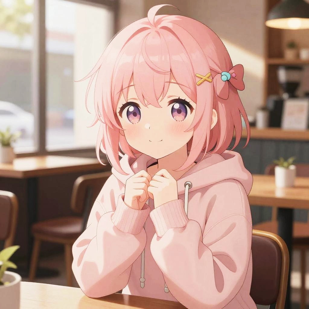 Anime femboy cute with short mint green hair and a delicate smile, wearing a fashionable streetwear outfit, sitting on a park bench covered with autumn leaves, with soft golden hour lighting and a peaceful urban park in the background.