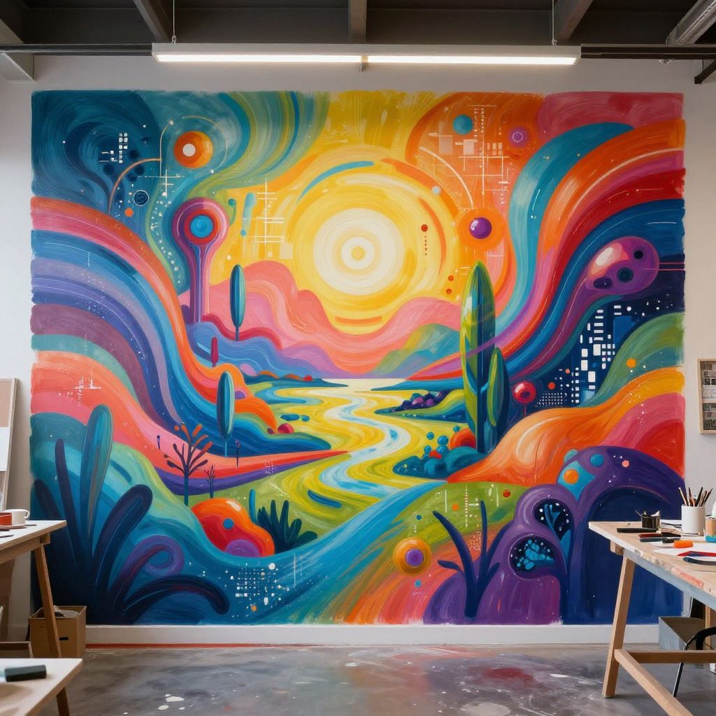 AI Painter Creating Futuristic Mural