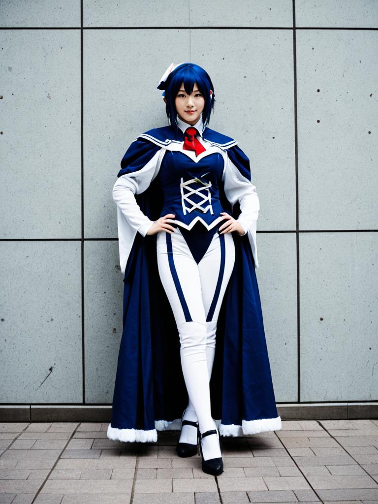 Photo-realistic cosplay photo of person in arisa bannings costume. . full body shot