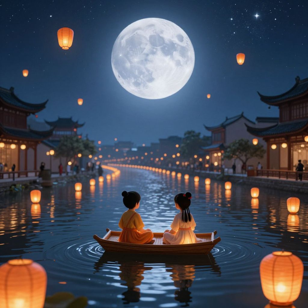 Children on Lanterns Beneath Moonlight
