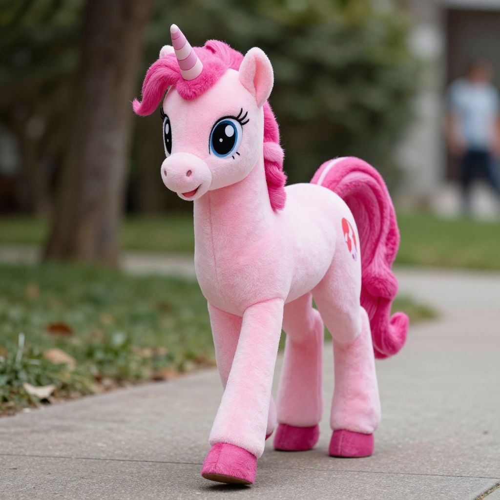Pink Pony Costume, in a pink unicorn costume walking down a sidewalk