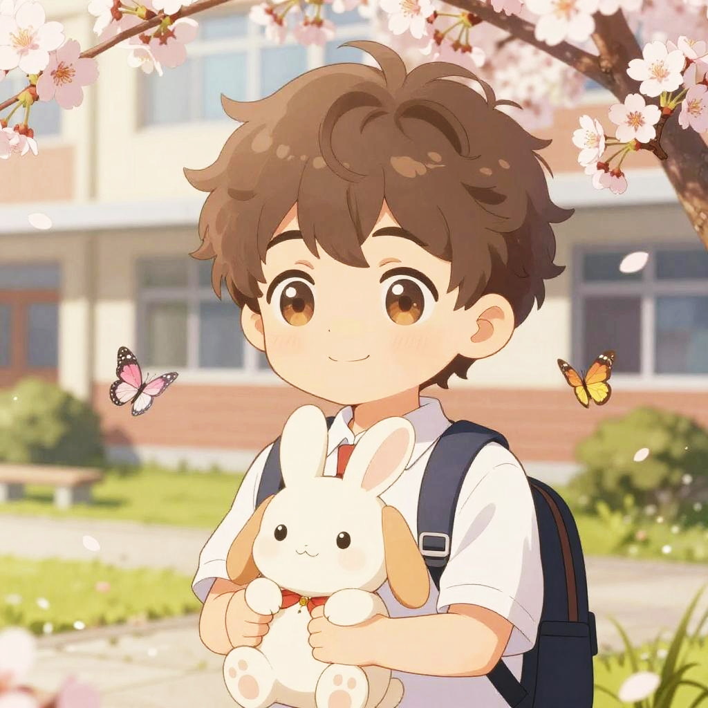 Charming dreamy cloud fairy with soft pastel pink bob and hazy lavender orbs, featuring a gentle smile, rendered in soft pastel illustration holding fluffy bunny plush surrounded by floating cotton clouds in a skybound terrace atmosphere with fluttering feathers and airy sparkles enhancing the airy and whimsical aesthetic