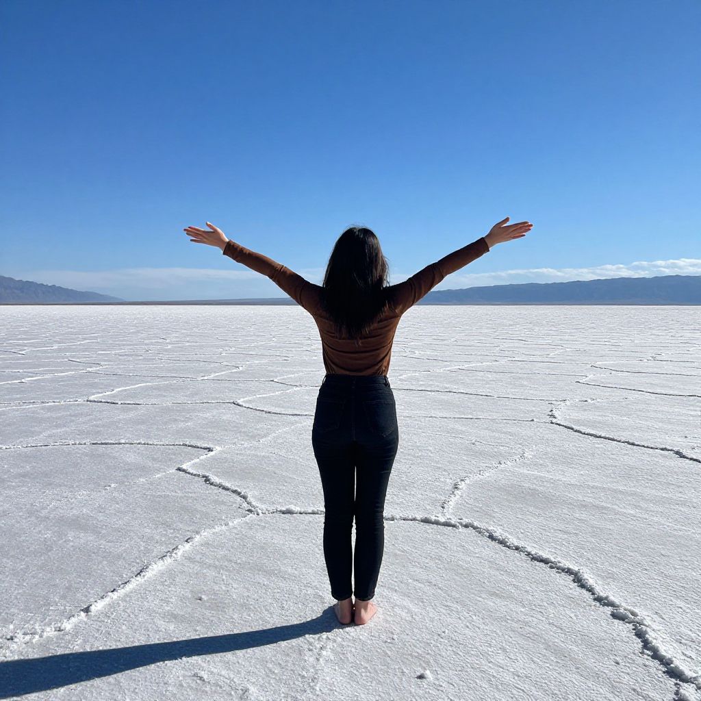 Woman on Vast Salt Flats