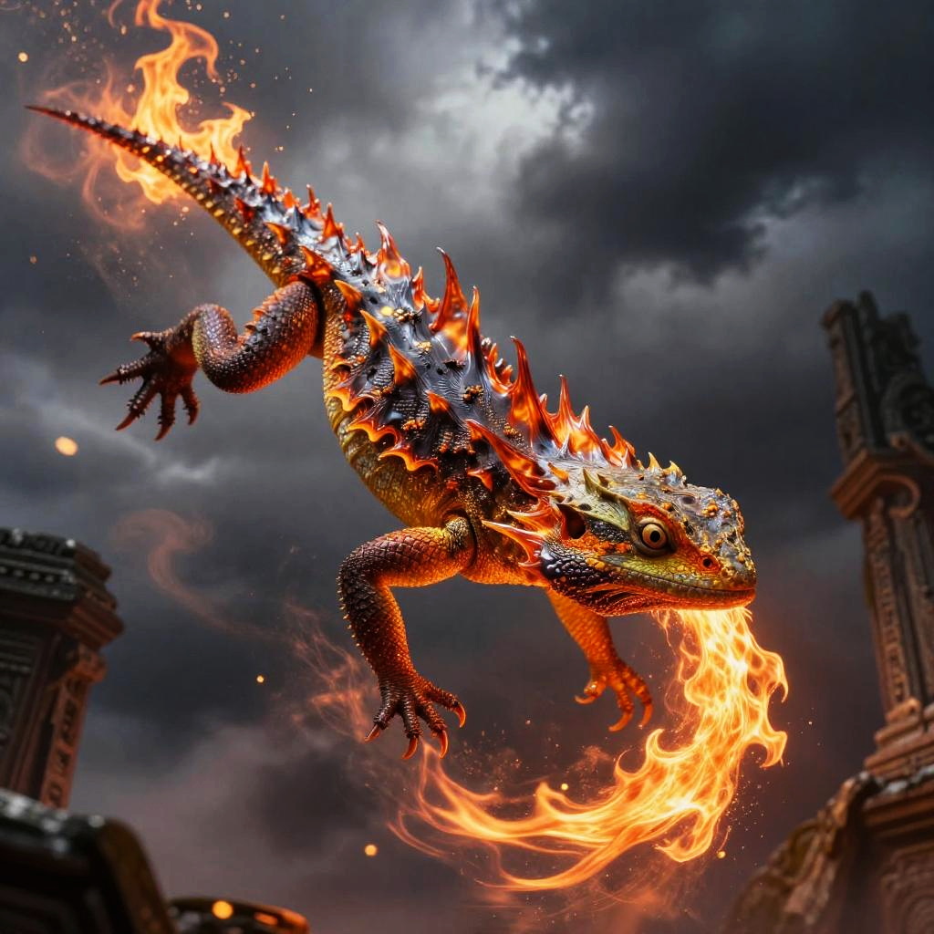 Ember-Lizard Mid-Air Flame Spiral