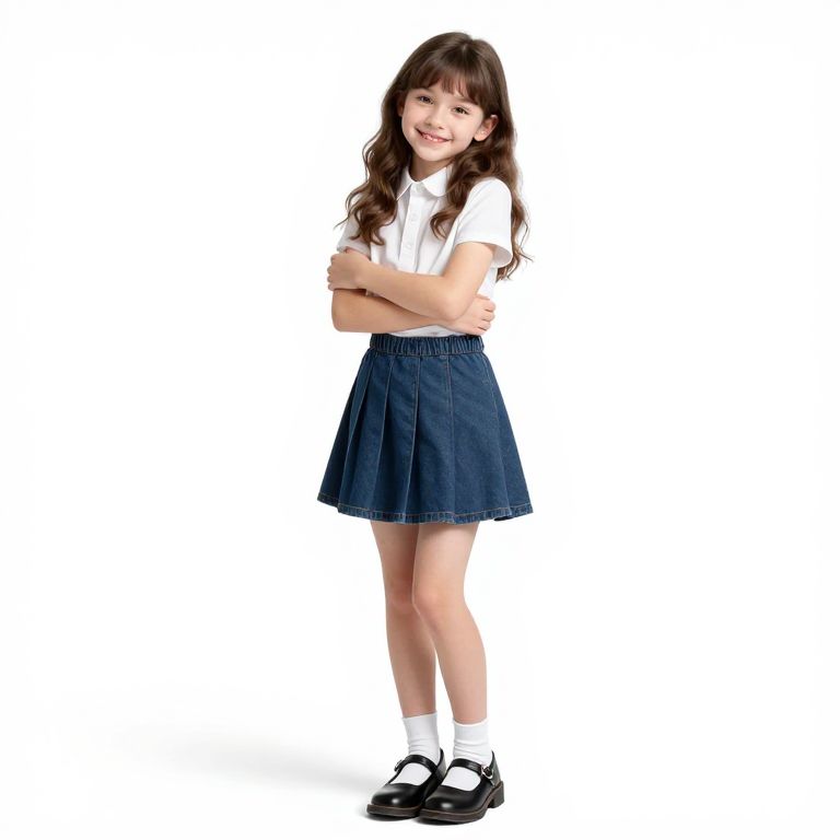 Sweetheart Smiling Tenager girl hugs herself, full body photography, white background, ultra - detailed, 8k,