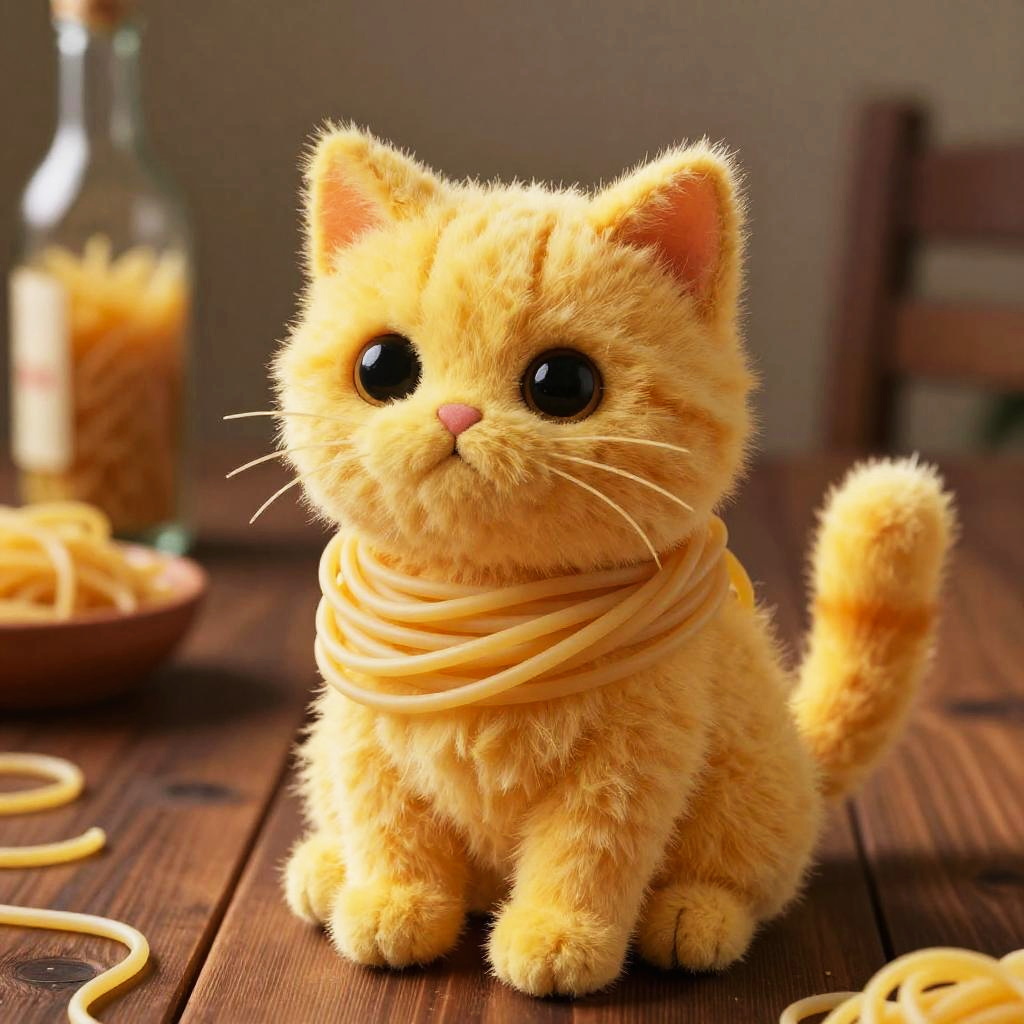 Fat cat eating Cheetos messy and content, surrounded by scattered Cheetos bags, colorful kitchen setting with warm lighting, exaggerated cute chubby cheeks, cartoon-style realism.