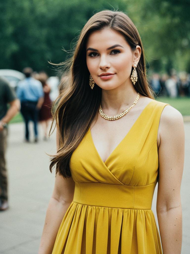 Smiling Young Woman in Elegant Jewelry and Coat Outdoors