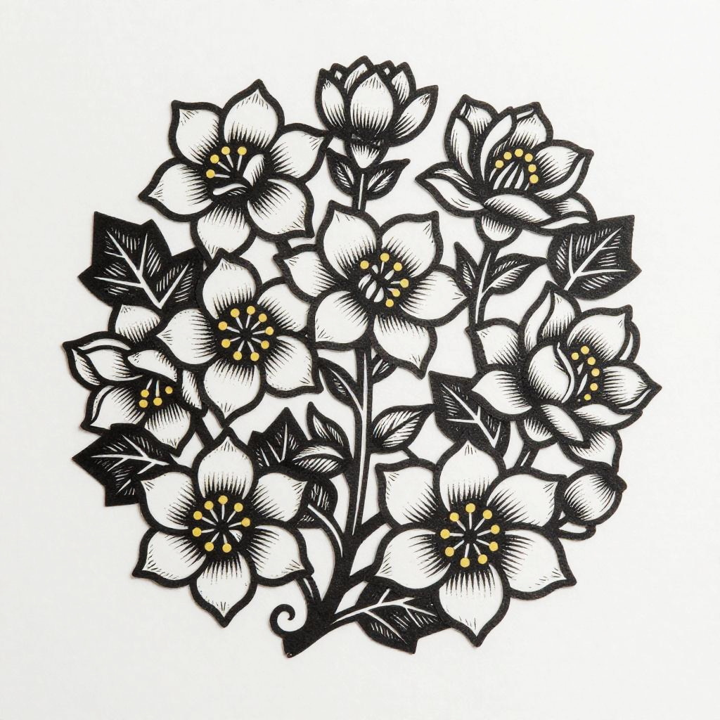 Engraved copper plate of spiraling artichoke blossoms interspersed with fluttering bees, rendered in aged burnished bronze and dusky cream with bold carved lines, deep crosshatching and stipple shading for depth. Clean white field background, strong negative space, high contrast, crisp edges, Art Nouveau whiplash curves and traditional tattoo flash sensibility. Balanced yet organic composition, museum-grade print feel, no text, no gradients.