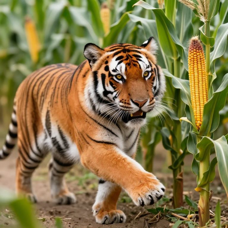 Fierce Tiger Protecting Corn Plant