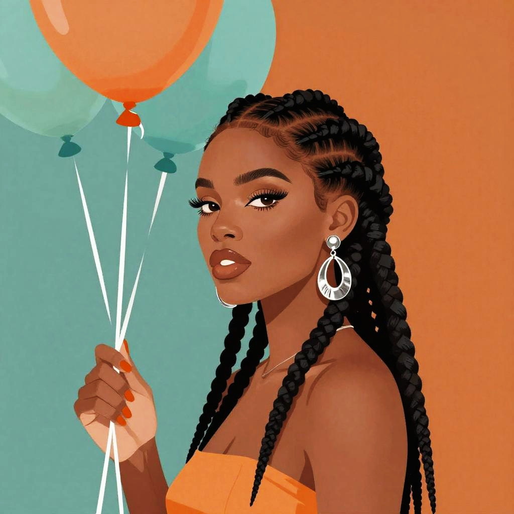 An Afrofuturism-inspired illustration of an elderly man with short gray curls and round glasses holding helium balloons. Set against a forest green and cream background, the design emphasizes bold and elegant features in a stylized, vibrant art form.