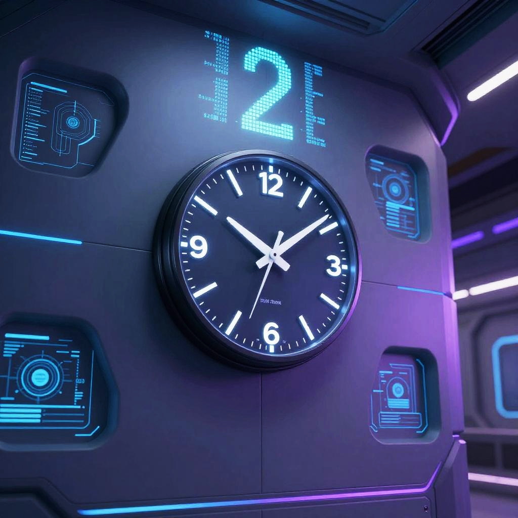 Futuristic AI Clock in Sci-Fi Interior