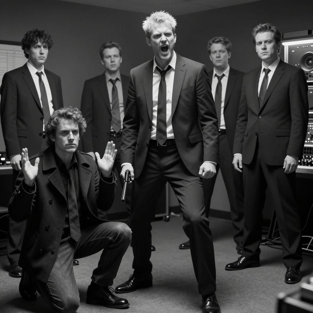 Tense Interrogation Scene in Black and White
