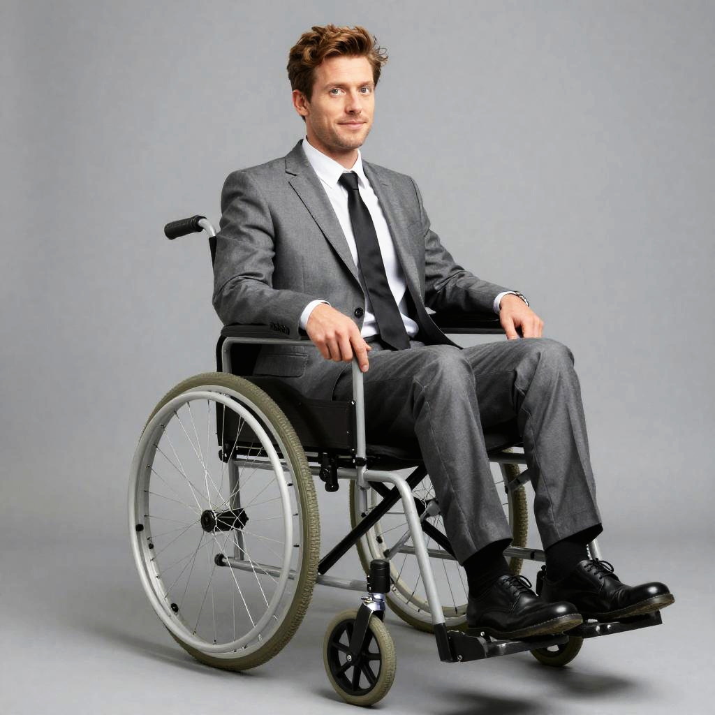 Funny Wheelchair Halloween, man in a suit and tie sitting in a wheelchair
