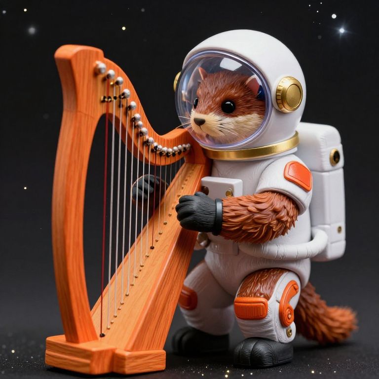 Stoat Astronaut Playing Miniature Harp