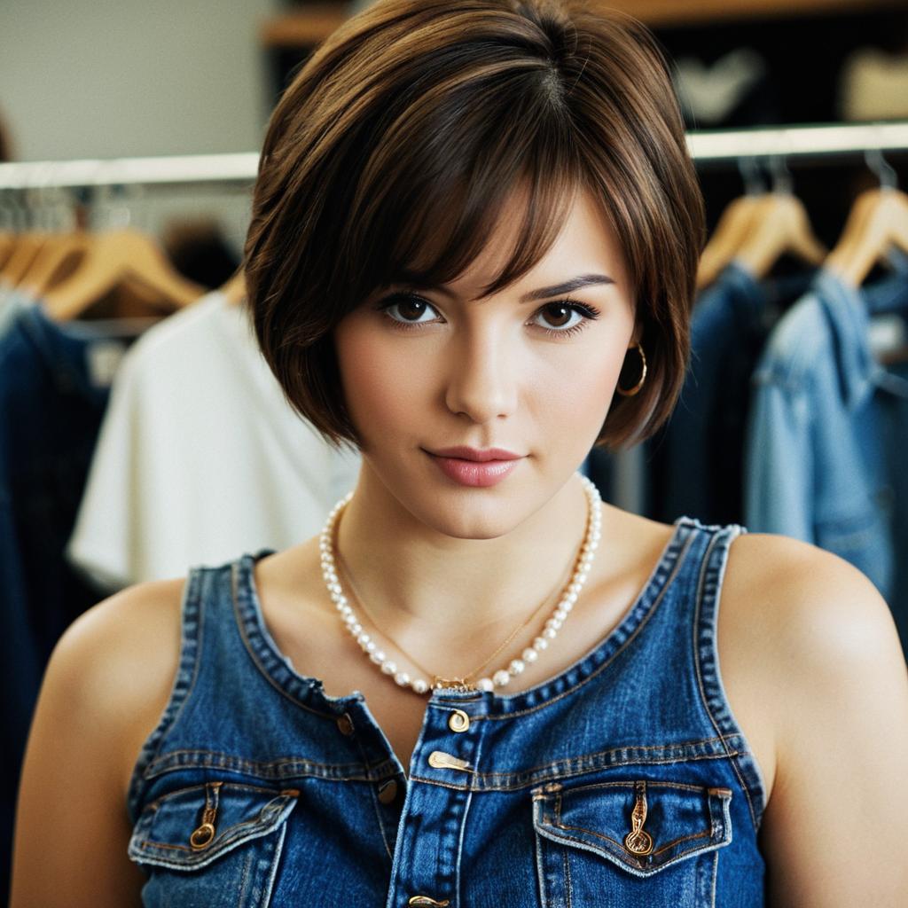 Stylish Woman in Denim Boutique Setting