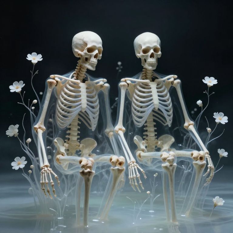 A human skeleton slowly transforming into stained glass windows, matte oil painting, concept art, dnd, vibrant, clear, crisp, sharp, bones, award - winning, extremely detailed, 4 k, 8 k