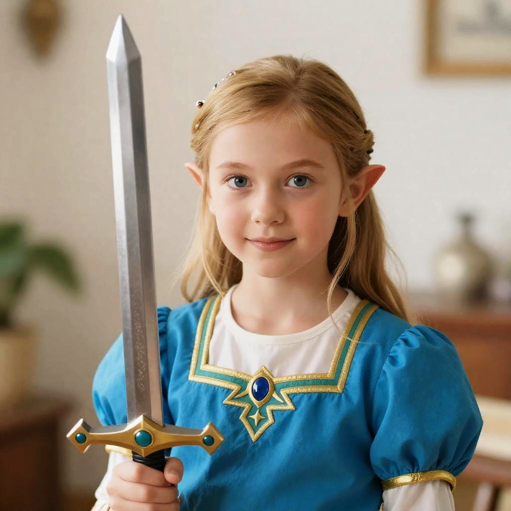 Childrens Princess Zelda, a close up of a young girl with a sword in a room