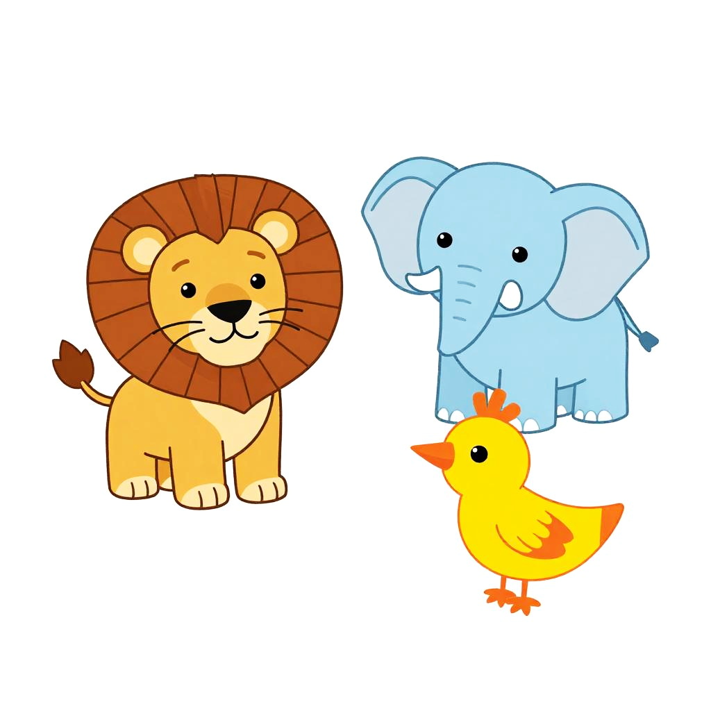 Toddler Noah's Ark coloring page with cartoon animals, including lions, elephants, and birds, vibrant playful design, simple shapes and clear lines, child-friendly scene