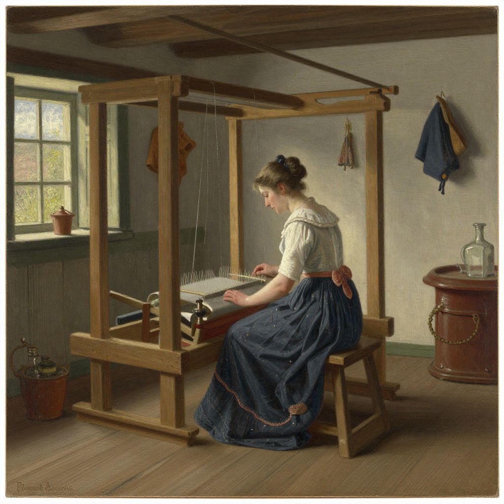 Geskel Saloman (1821- 1902) Cottage Interior with woman at the loom Signed and dated G. Saloman 1857