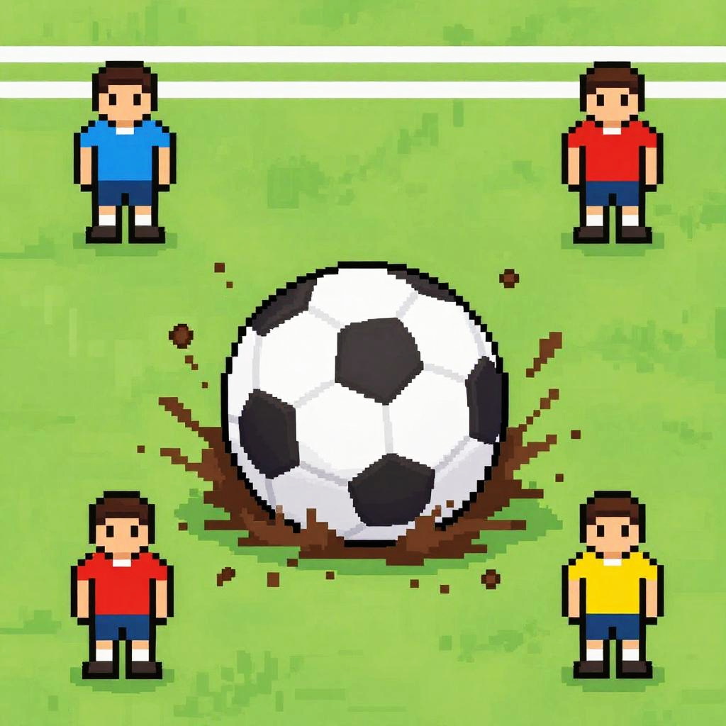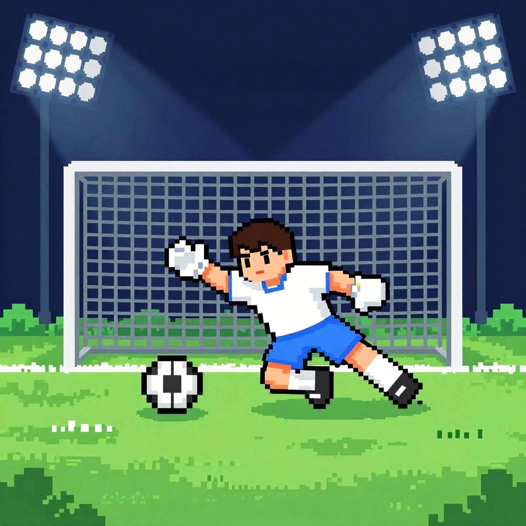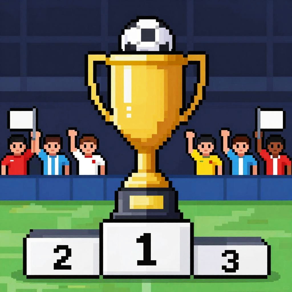 Soccer pixel art scene featuring a vibrant stadium with cheering pixelated fans, detailed players mid-action kicking the ball, vibrant colors, retro 8-bit style