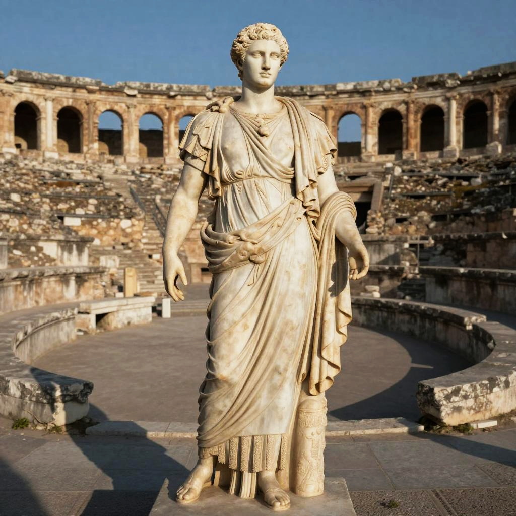 Stoic Greek Statue in Amphitheater Ruins