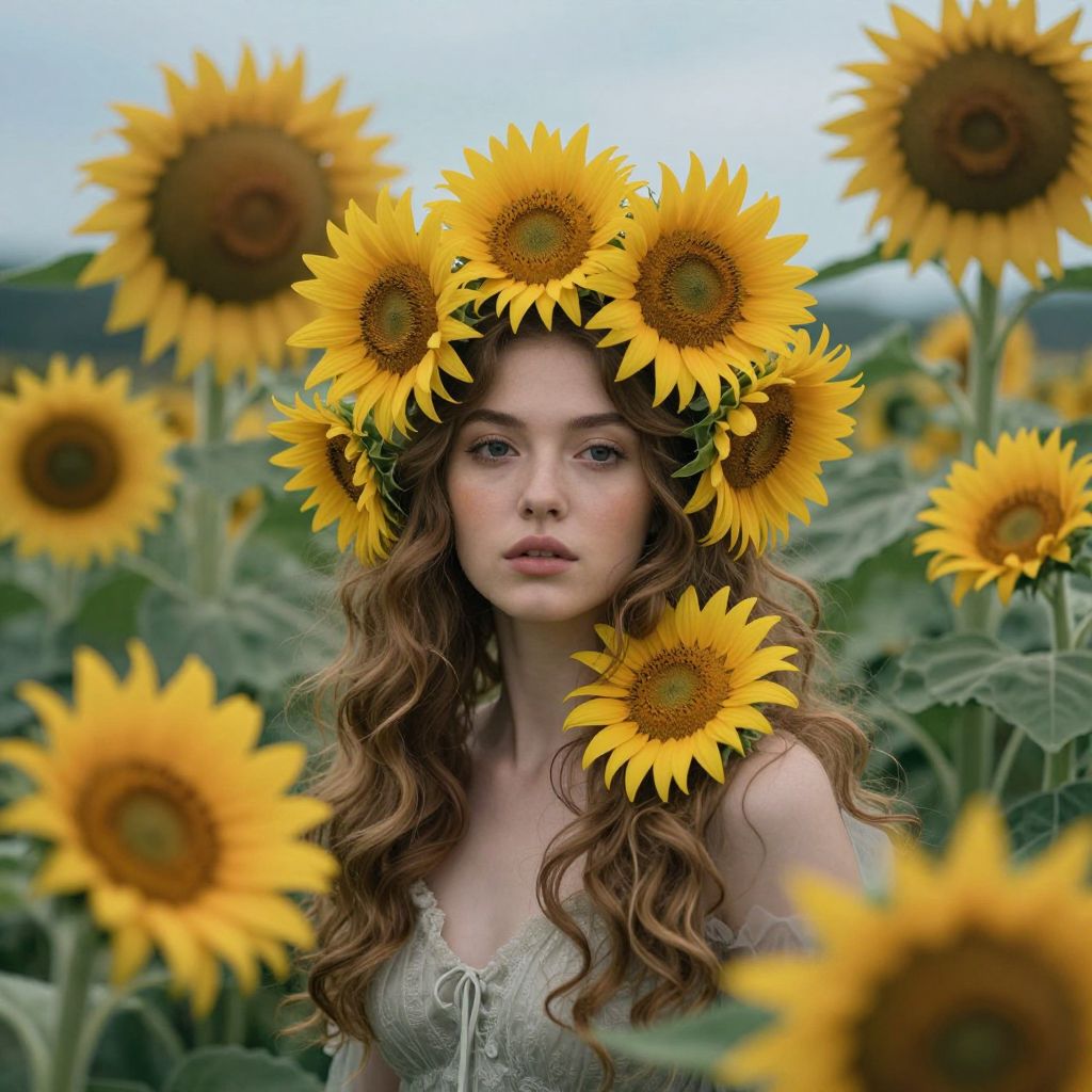 Ethereal Woman with Sunflower Adornments