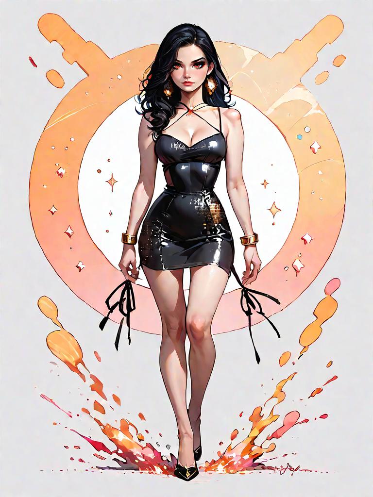 1girl, source_comics, realistic face, full body shot, Woman, summer clothing, white sleeveless bodysuit, front lace-up detail with gold eyelets and a plunging neckline, fitted silhouette.