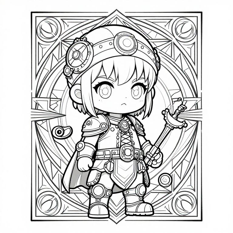 Shamanism anime chibi steampunk for coloring book, art deco poster, poster, artstation, highly detailed, clean line art,
