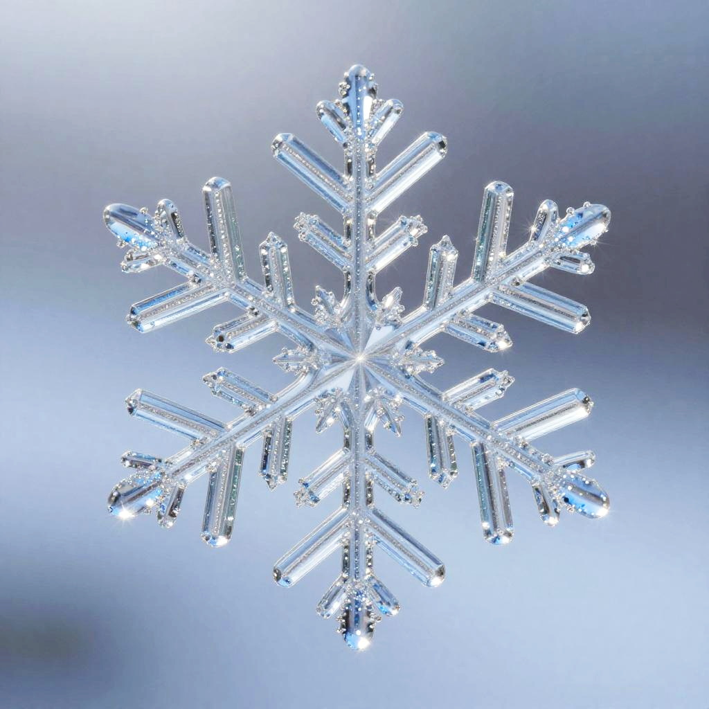 Sparkle drawing of a delicate glass snowflake with intricate patterns, glistening with frosty sparkles under soft winter light, cool blue and white tones, highly detailed and elegant