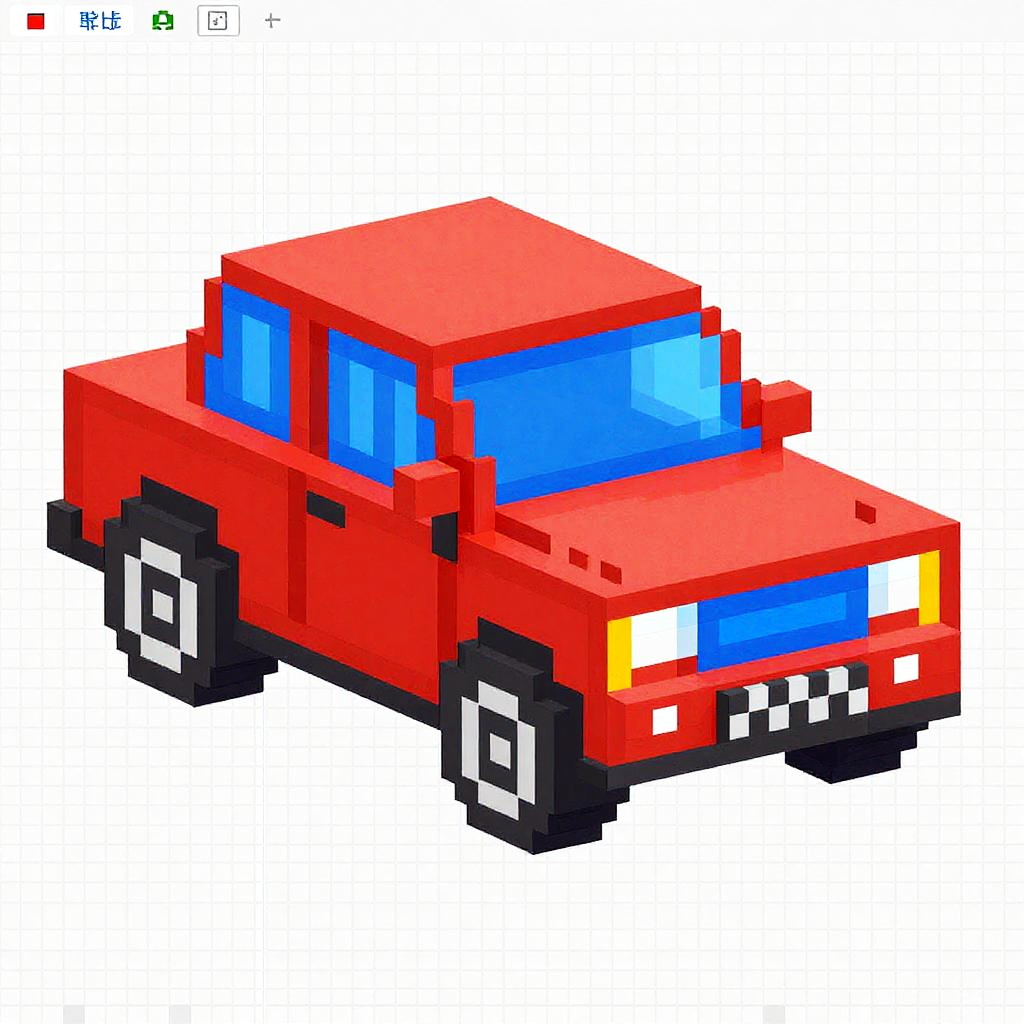 Spreadsheet pixel art car, detailed small pixel blocks arranged to depict a classic sedan on a grid background, vibrant colors, 8-bit video game style, sharp edges and clean lines, retro computer aesthetic, colorful cells forming the vehicle silhouette.