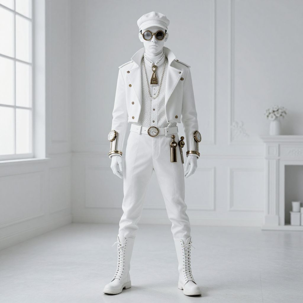 Steampunk Fashion a man so awesome yet so far from the reality of being white, a white room his white skin, and the white light its a real white experience from a dark side of life,