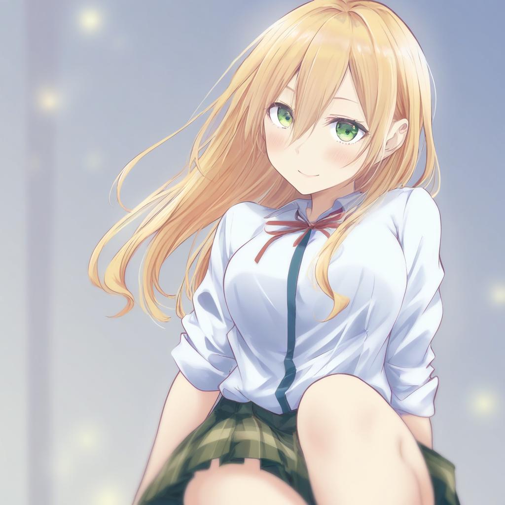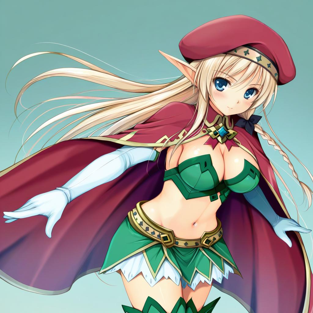 Alice zuberg, sword art online, 1girl, floating hair, blue eyes, blonde hair, very long hair, white hairband, hair intakes, sidelocks, braided ponytail, medium breasts, by artist tsunako, leet