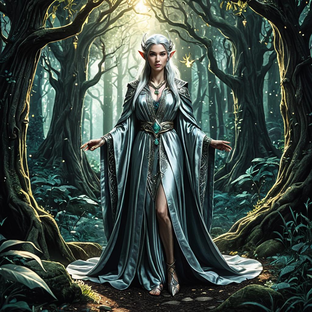 Lavender-Eyed Mage in Gothic Library