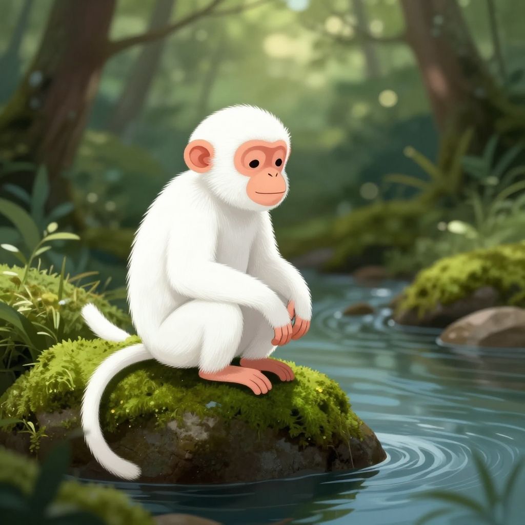 Fluffy monkey, colourful chromolithography print, ukiyo-e print, hyper detailed, subtle textures, vivid colours, 32k,