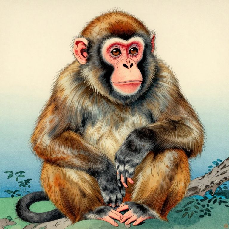 Colorful Ukiyo-e Style Fluffy Monkey Print