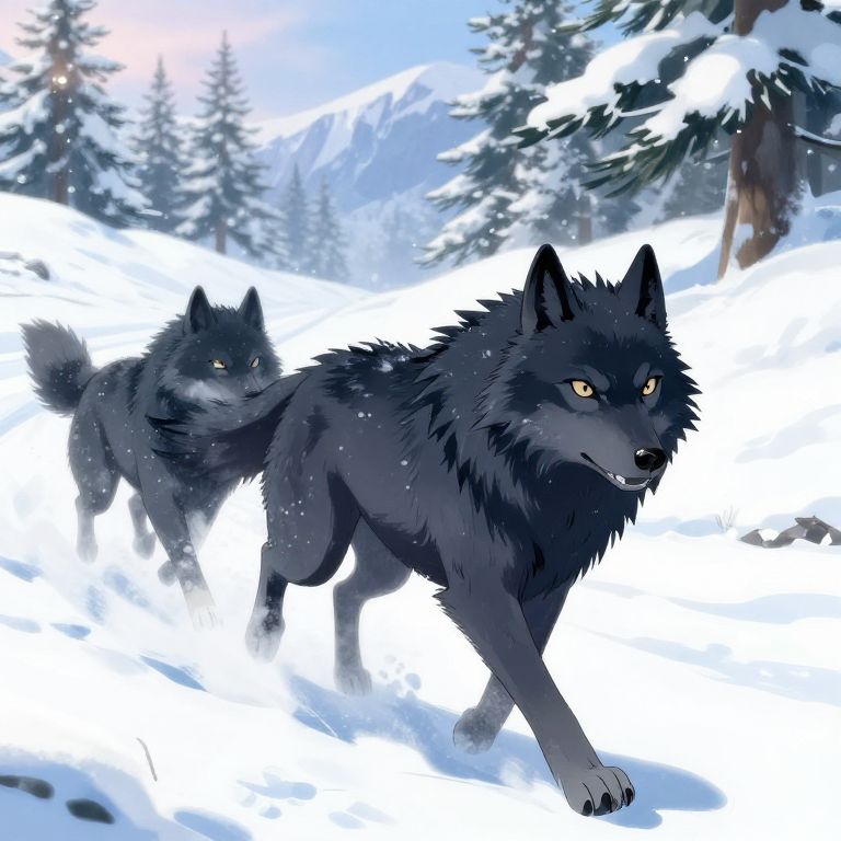 Anime Black Wolf Pack in Snowy Mountains
