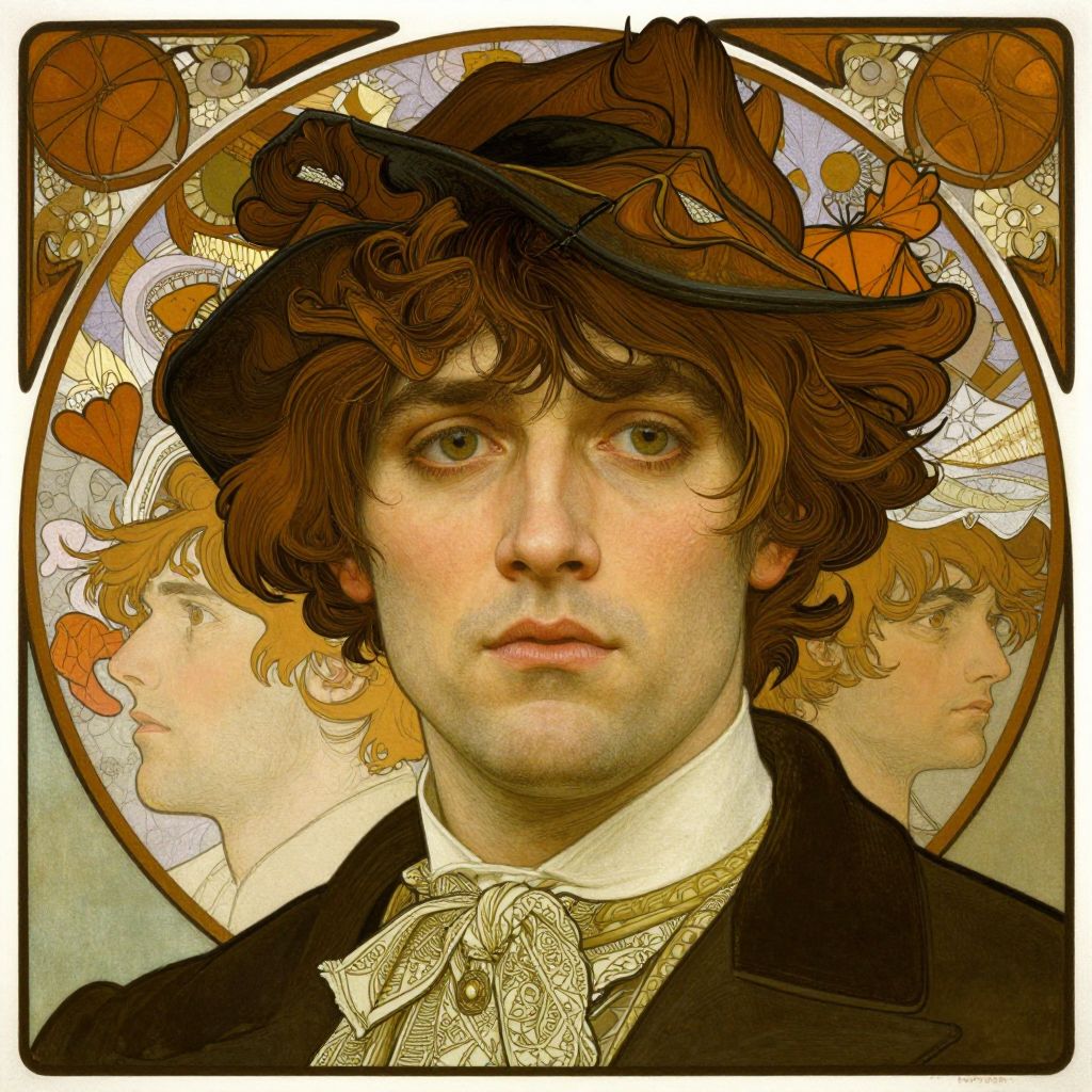 Realistic detailed face portrait of an irish man, male by alphonse mucha, amano, karol bak, greg hildebrandt, jean delville, and mark brooks, art nouveau, neo-gothic, gothic, rich deep moody colors