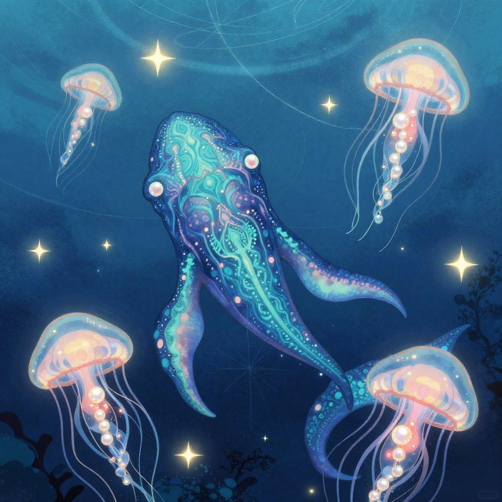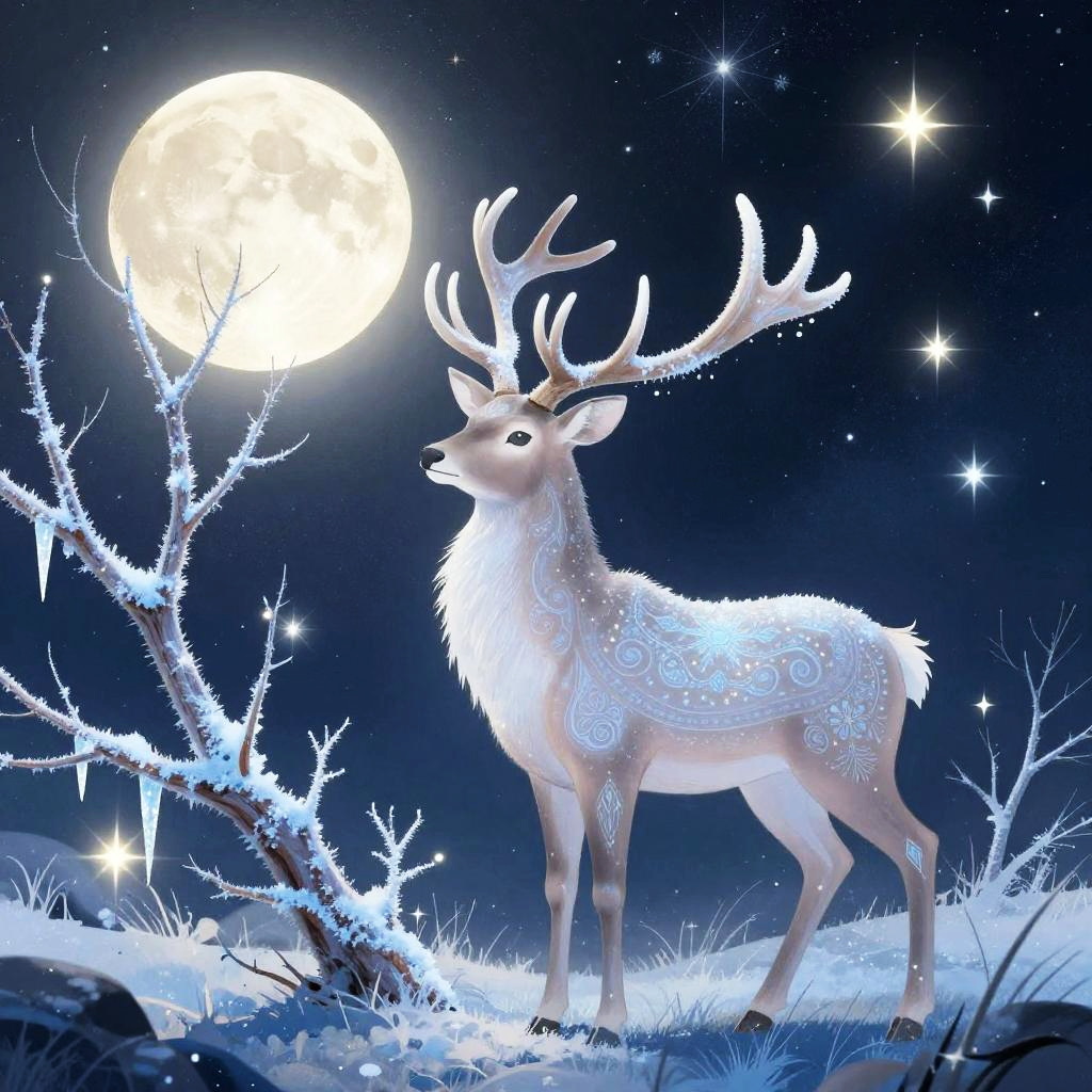 Mystical illustration style featuring a radiant jackal surrounded by sun flares and glistening sands. Rendered in a wide-angle view with vibrant elements and intricate patterns, the artwork combines golden yellow and sandy brown for a dramatic effect. The jackal and sun flares are in the foreground, with a starry background adding depth. Glowing stars and intricate lines create a magical ambiance, enhanced by a soft golden ambient lighting and a mystical filter. The balanced composition emphasizes the mystical quality and vibrant highlights, creating a captivating scene.